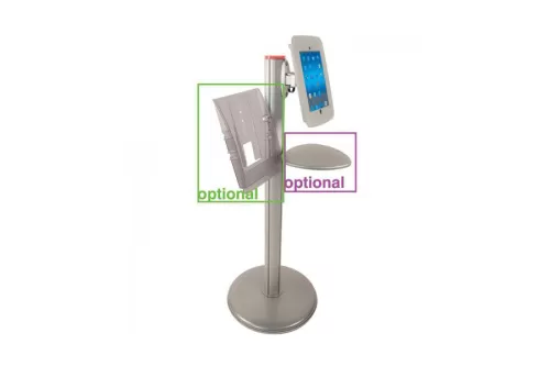 Die stylische und doch robuste iPad Säule mit einer sicheren iPad Halterung zeigt die Vielfalt des Linear Messesystems.
