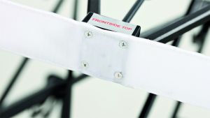 - 50 mm weißes Klettband mit weißen Schrauben an der Vorderseite
