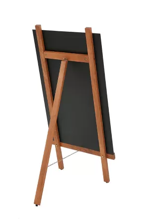 Holz Kundenstopper Easel Staffelei 520mm x 830mm ist auch als beschreibbare, magnetische Kreidetafel erhältlich.