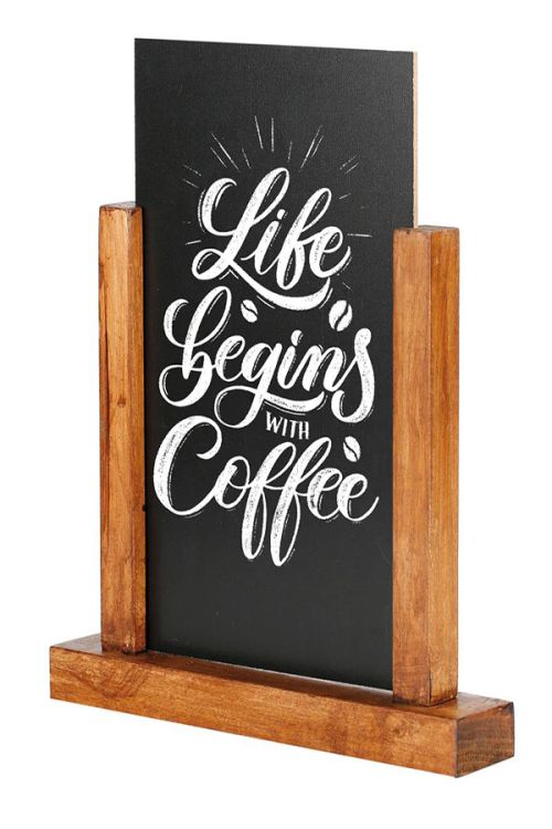 • Tischaufsteller aus Buchenholz, dunkel lasiert