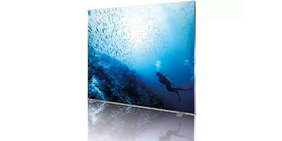 Die Octalumina Leuchtwand kann ein- oder beidseitig beleuchtet werden, um Ihre Inhalte optimal zu präsentieren. Auf Anfrage ist auch ein hochwertiger Textildruck erhältlich, der Ihre Marke und Ihr Design perfekt zur Geltung bringt.