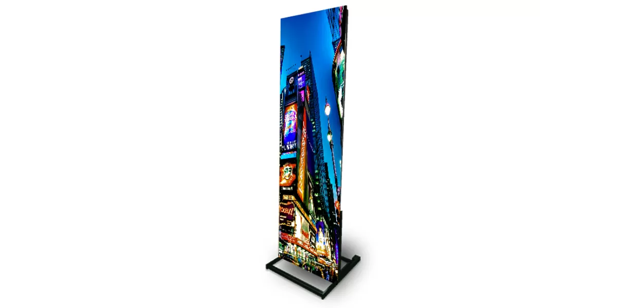 LED Video Infostelen unterstützen Videobilder und Animationen. Durch ihre Modularität eignen sie sich für jeden Kontext: Veranstaltungen, Messen, Konferenzen, Werbeaktionen und Kommunikation im Geschäft.